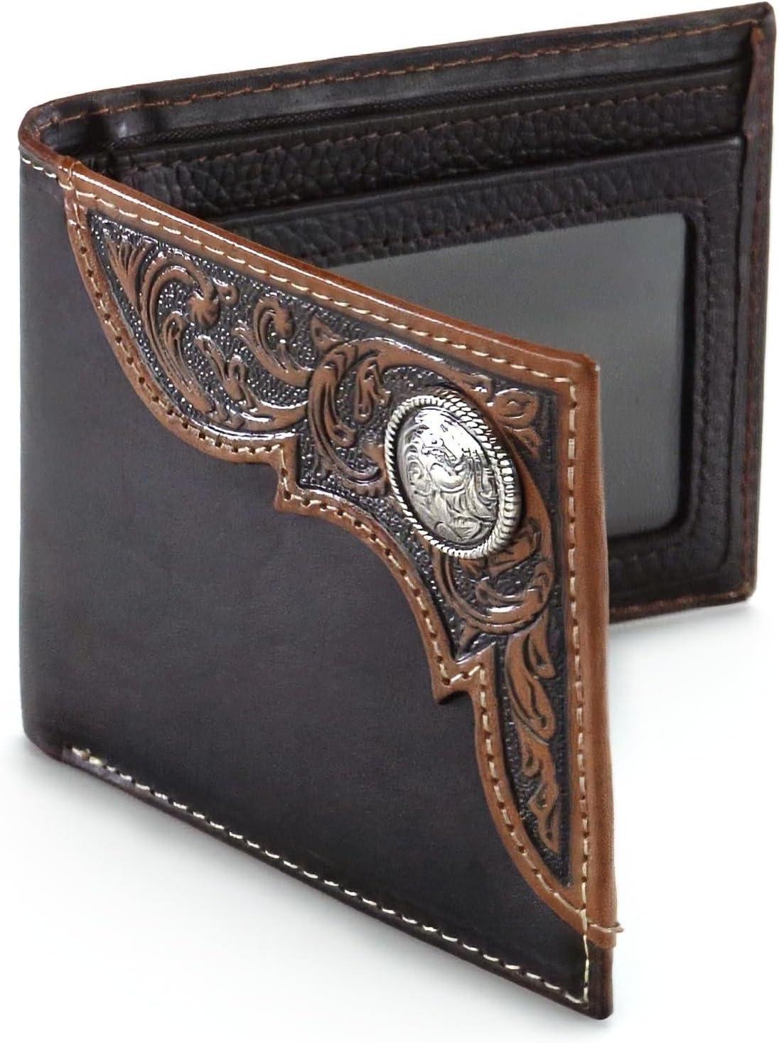 Ariat Men’s Distressed Corner Over Circle Trifold Wallet(Tan)