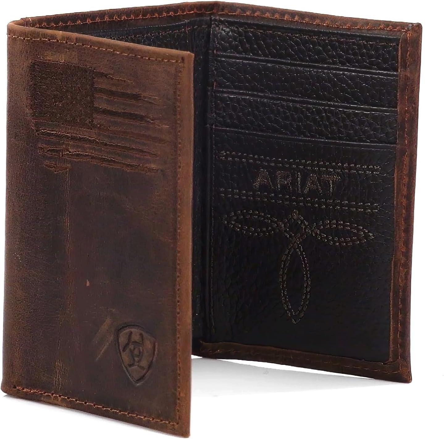 ARIAT Men’s Distressed USA Flag Leather Trifold Wallet