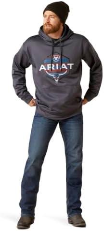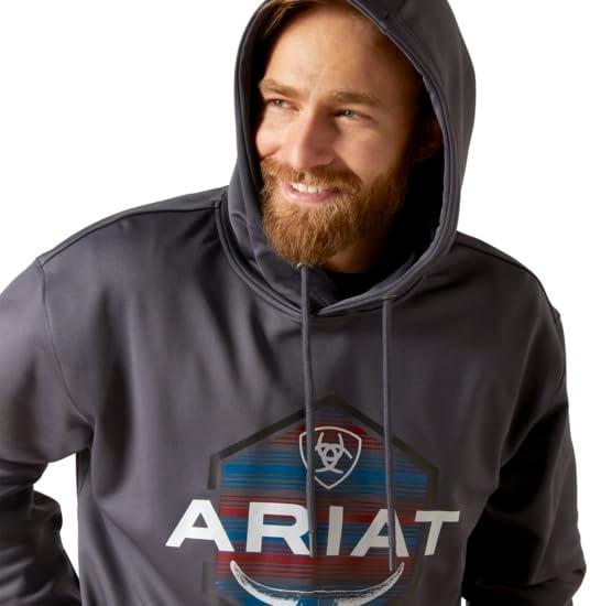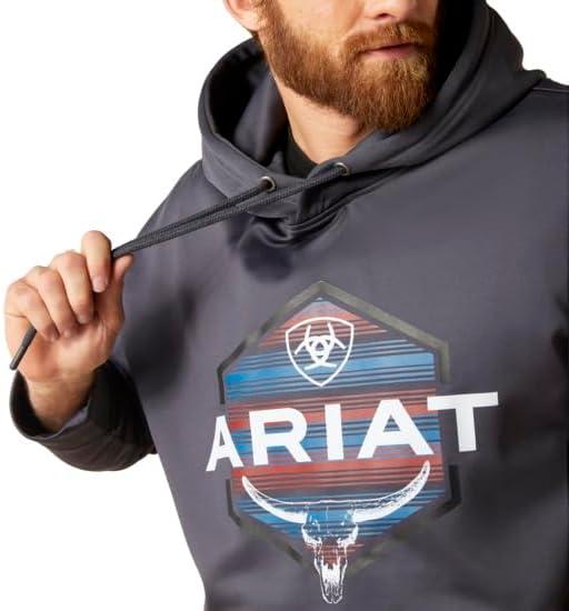 Ariat’s men’s graphic hoodies are created with a high quality blend of cotton and polyester that create a soft, comfortable hoodie that is perfect for the barn, work or town. Available in many different designs, you’re sure to find a hoodie that fits your style. Crafted with Greater Mobility Technology to help keep cuffs and hems in place during hard work, these hooded sweatshirts also have brushed fleece for heat retention, ribbed cuffs and hems, an adjustable hood and kangaroo pouch. Ariat is a leader in developing advanced technologies to deliver products that outperform in a variety of demanding environments. The brand partners with world-class biomechanical research groups and testing labs to improve product performance, comfort, and durability – while focusing on real-world product functionality. Ariat works with global suppliers to develop new materials that are lighter, cooler, and more durable than anything in the market. The brand field-tests all of its products to consistently raise the bar for functionality and style. Here at Ariat, we are committed to delivering performance footwear and clothing with an emphasis on technology and innovation. Today, Ariat’s world-class product team builds innovative and award-winning performance products for all types of outdoor and work environments.