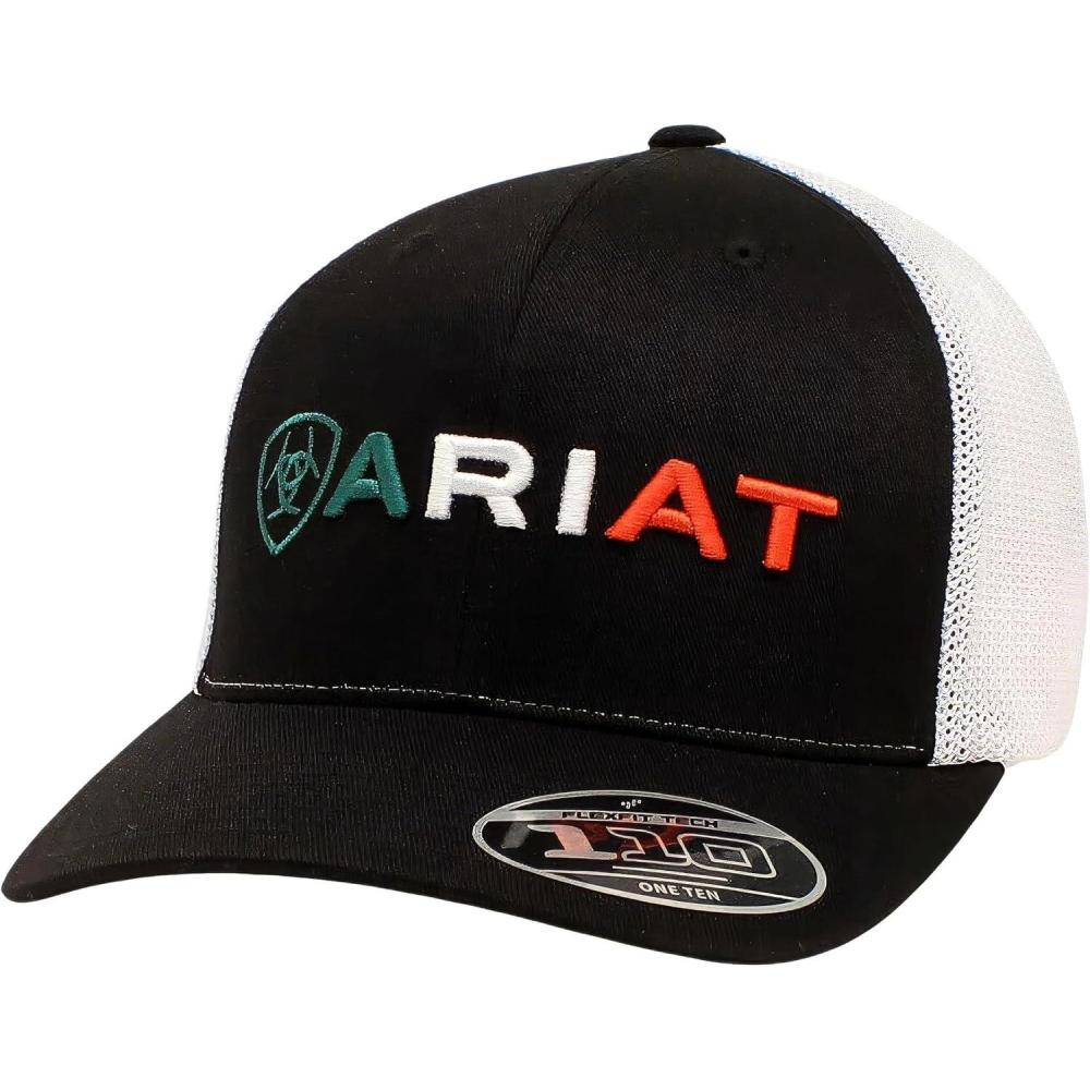 ARIAT Men’s Mexican Flag Colors Embroidered Snapback Cap, Black with White Mesh Back, 6-Panel Mid Profile(Black)