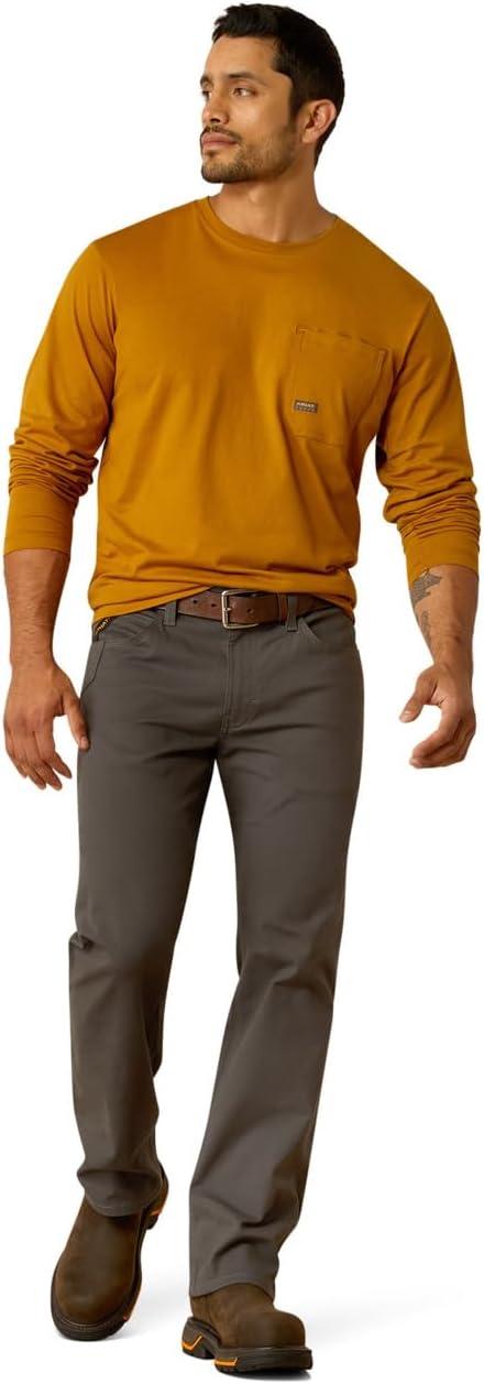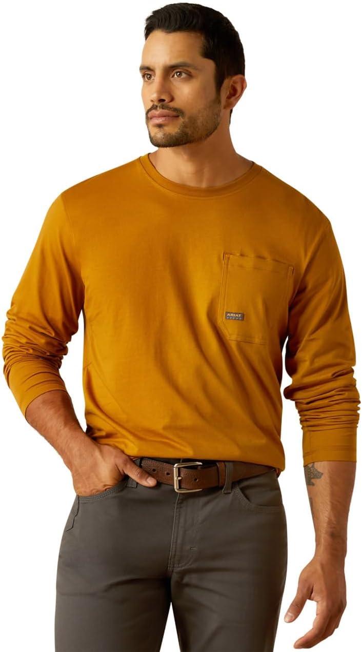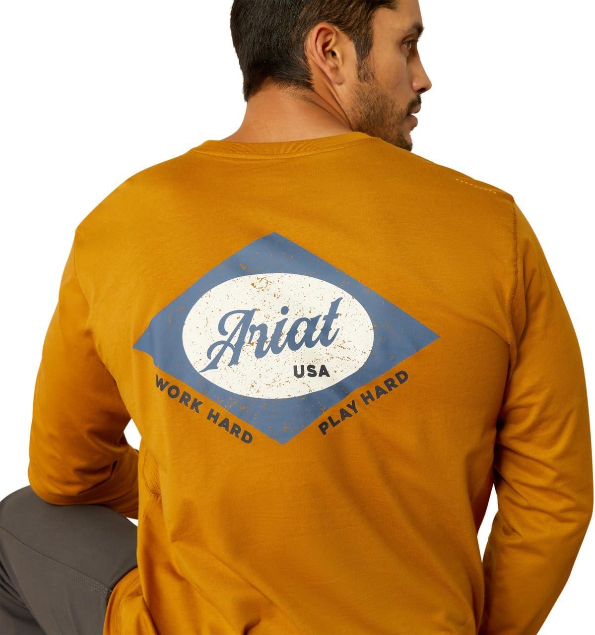 ARIAT Mens Rebar Workman Logo Long Sleeve Crew(Golden Brown)