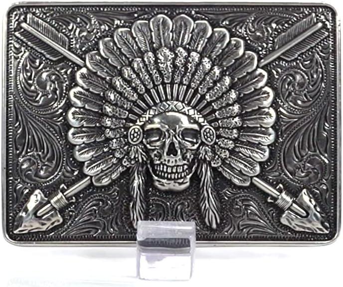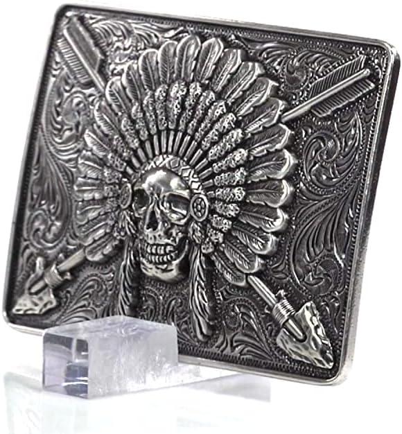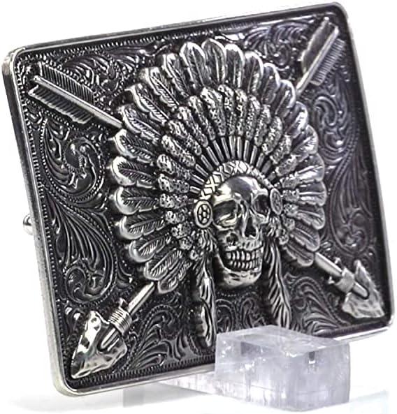 ARIAT Men’s Rectangle Chief Skull Buckle(Antique Silver)