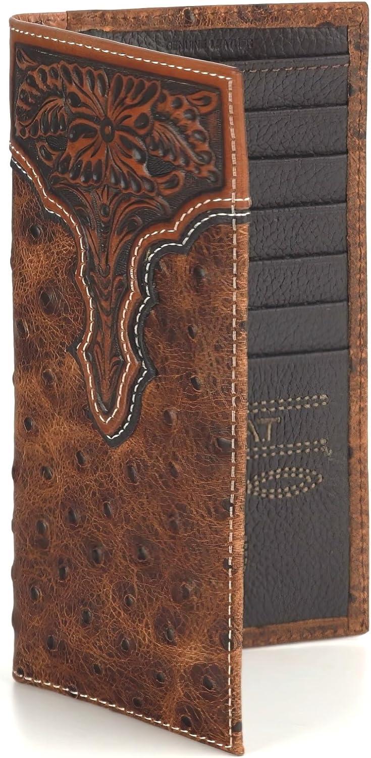 ARIAT Men’s Rodeo Ostrich Print Floral Embossed Wallet – A3553102 One Size
