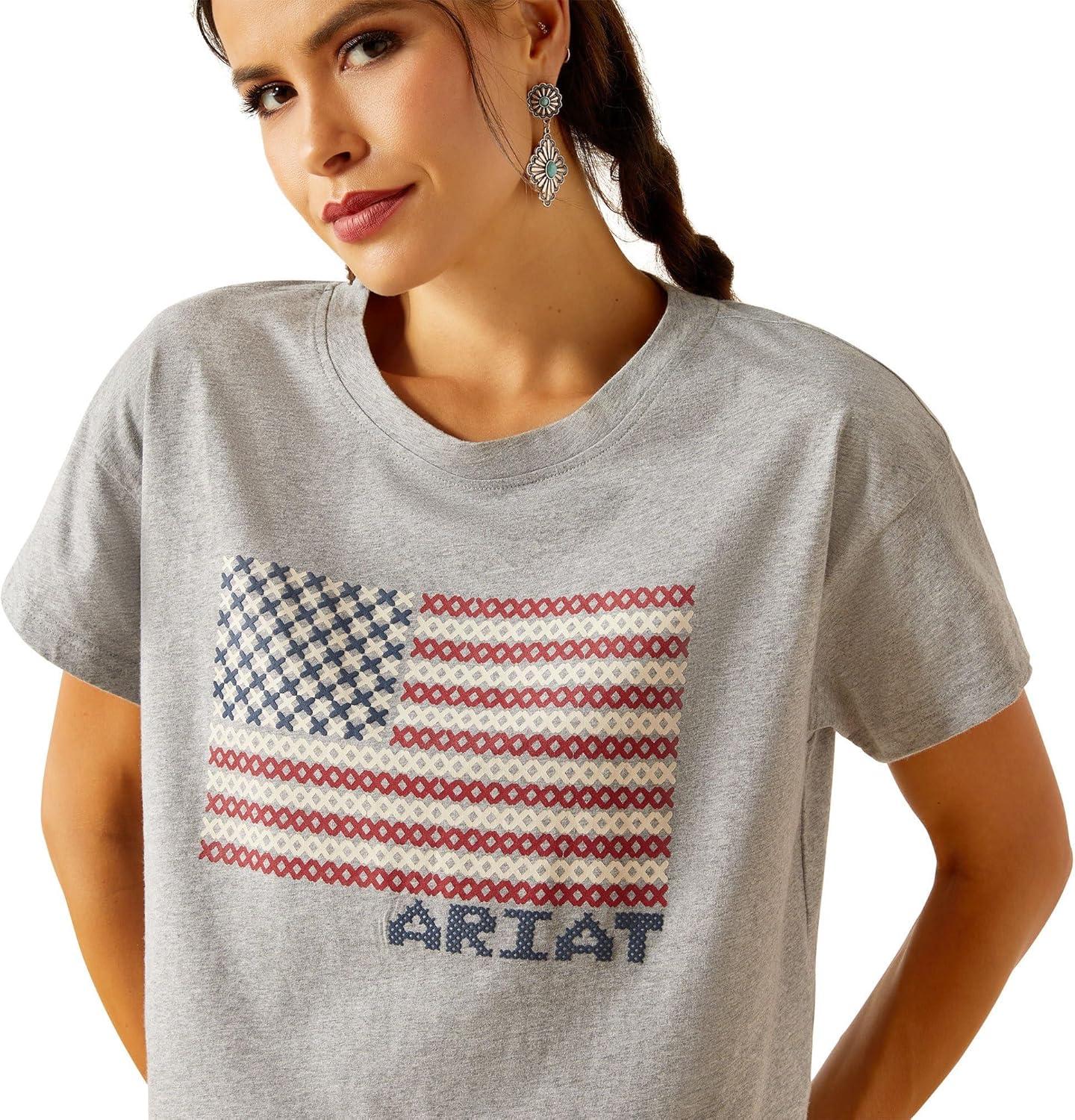 Ariat Womens Ariat Denim Label T-Shirt(Heather Grey/Homespun Flag)
