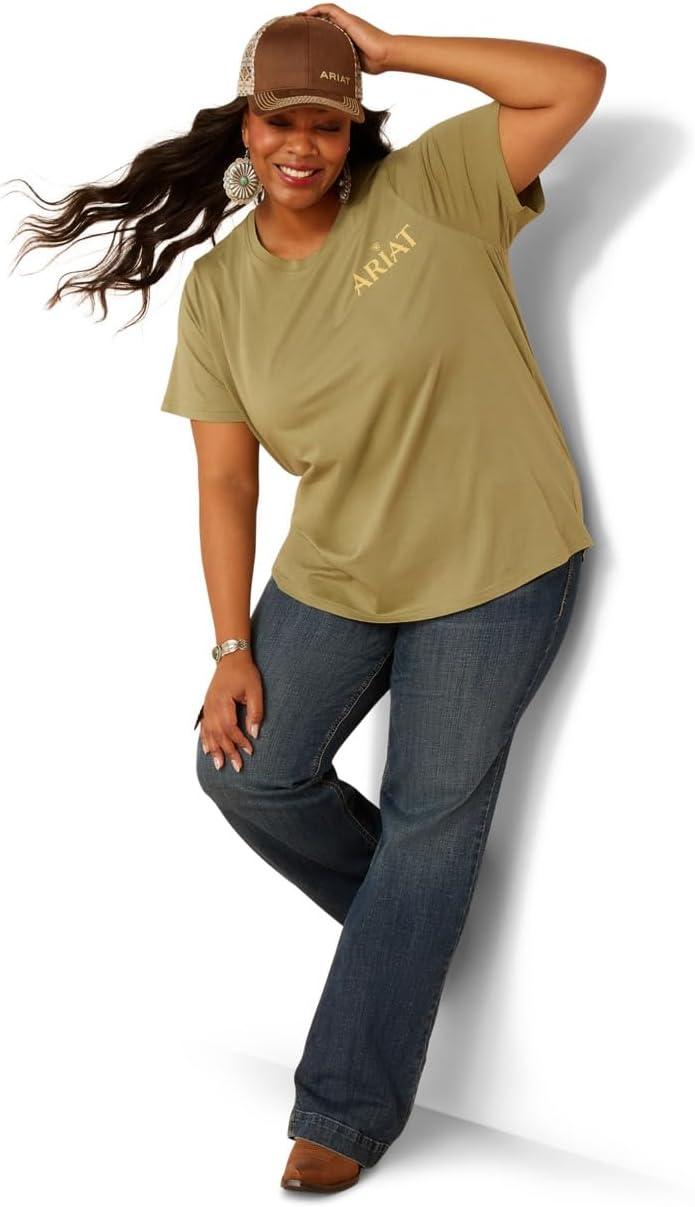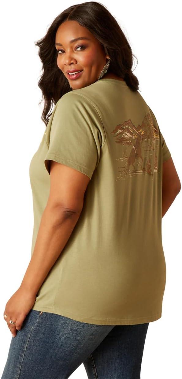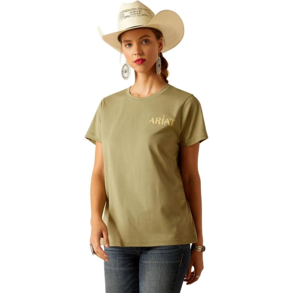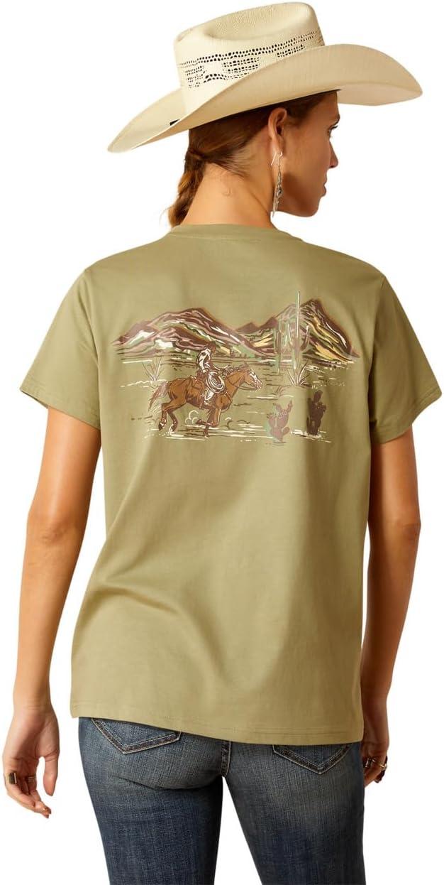 Ariat Womens Ariat Denim Label T-Shirt(Oil Green/Desert Scene)