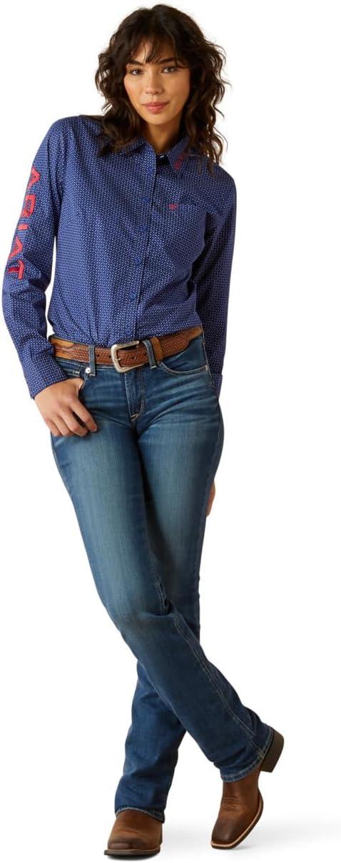 Say hello to spring with a shout of color. The kirby shirt is made from solid poplin, with a single chest pocket and a button down closure. Ariat's greater arm mobility technology provides an ideal fit and comfort when in motion.