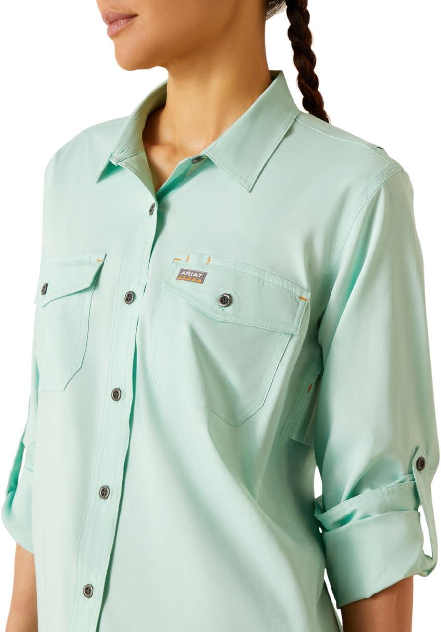 ARIAT Womens Rebar Made Tough Durastretch Work Shirt(Pool Blue Heather)