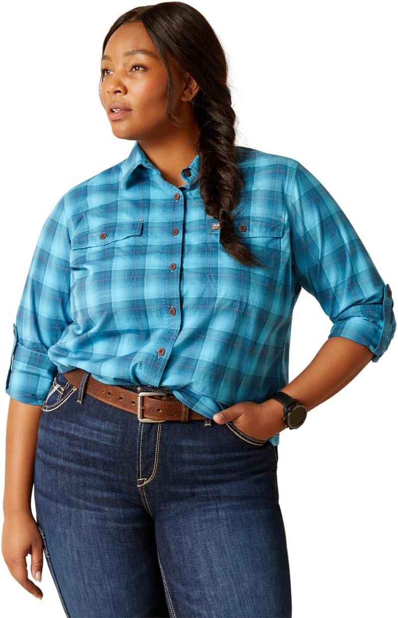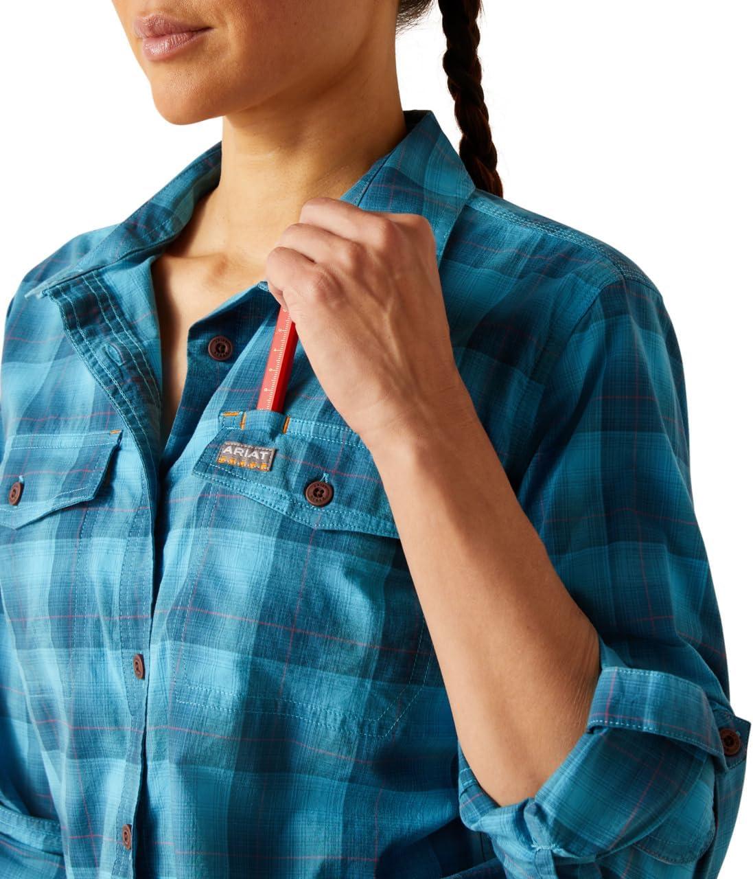ARIAT Womens Rebar Made Tough Durastretch Work Shirt(Prominent Blue Plaid)