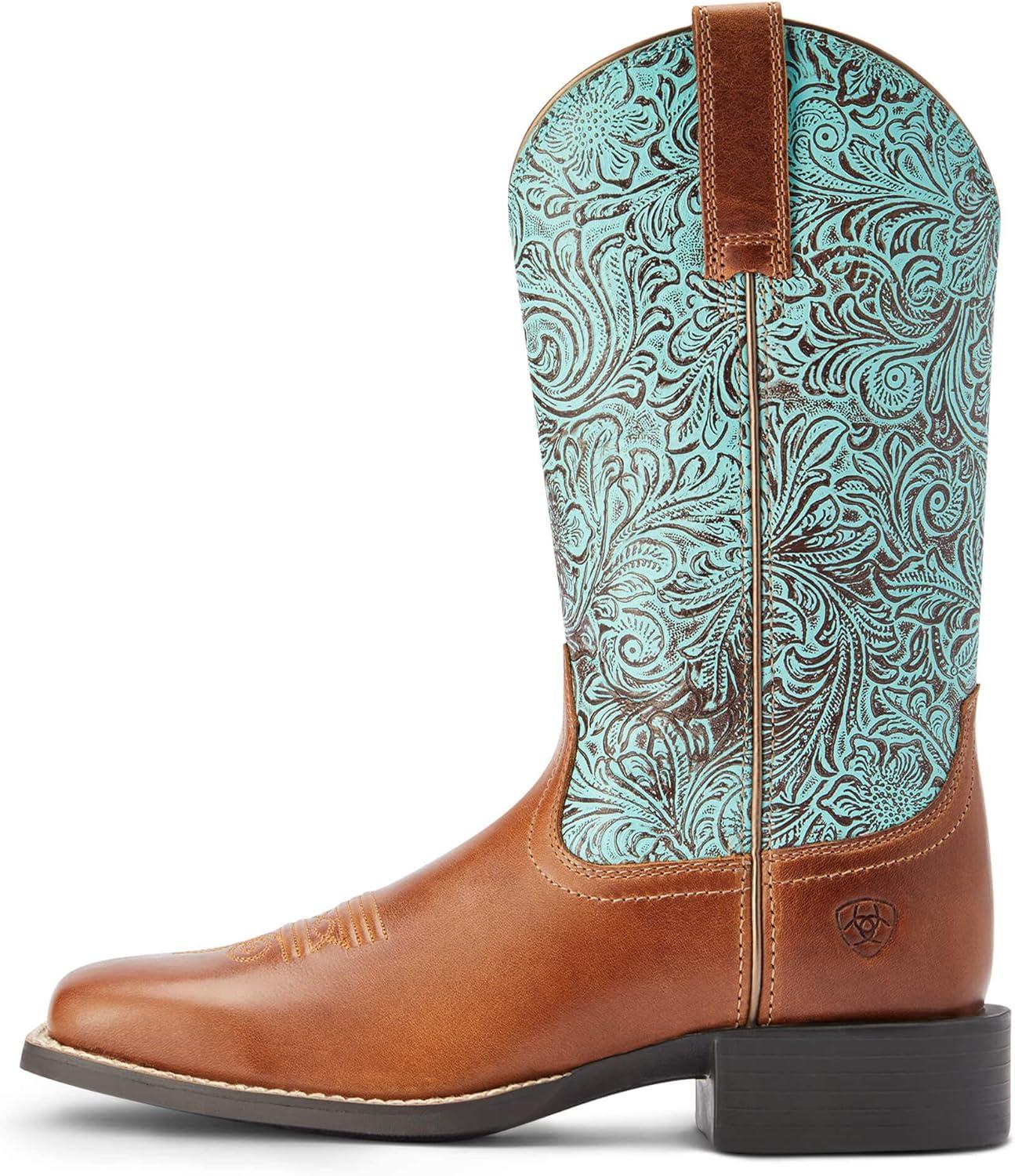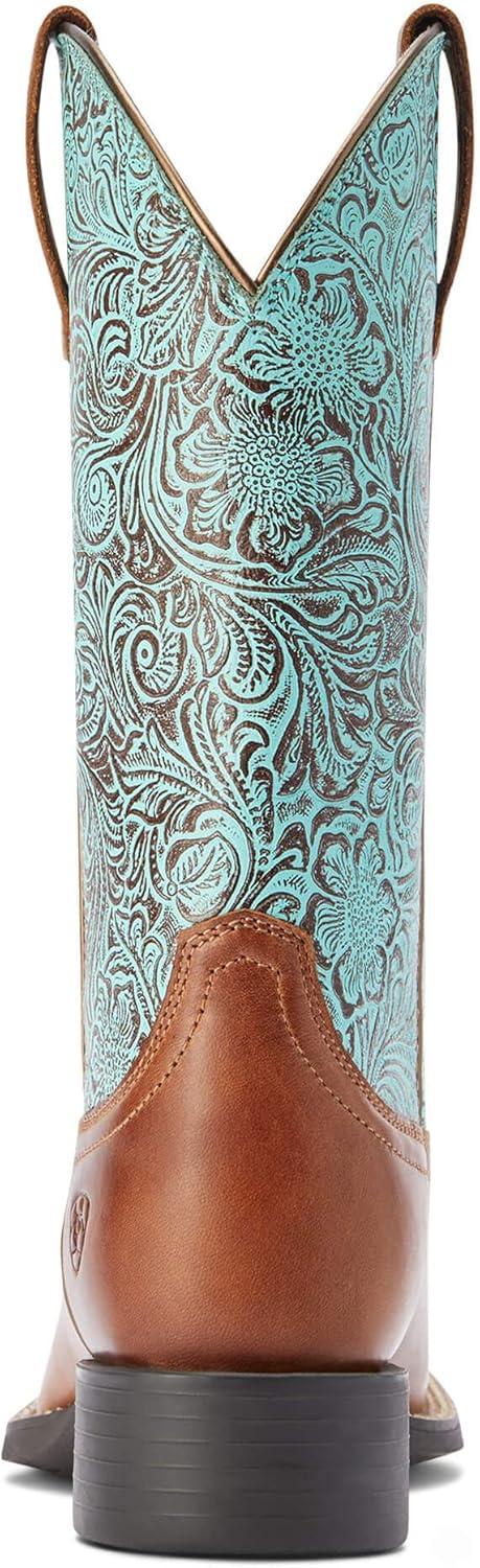 Ariat Women’s Round Up Square Boot(Beduino Brown/Turq Floral Emboss)