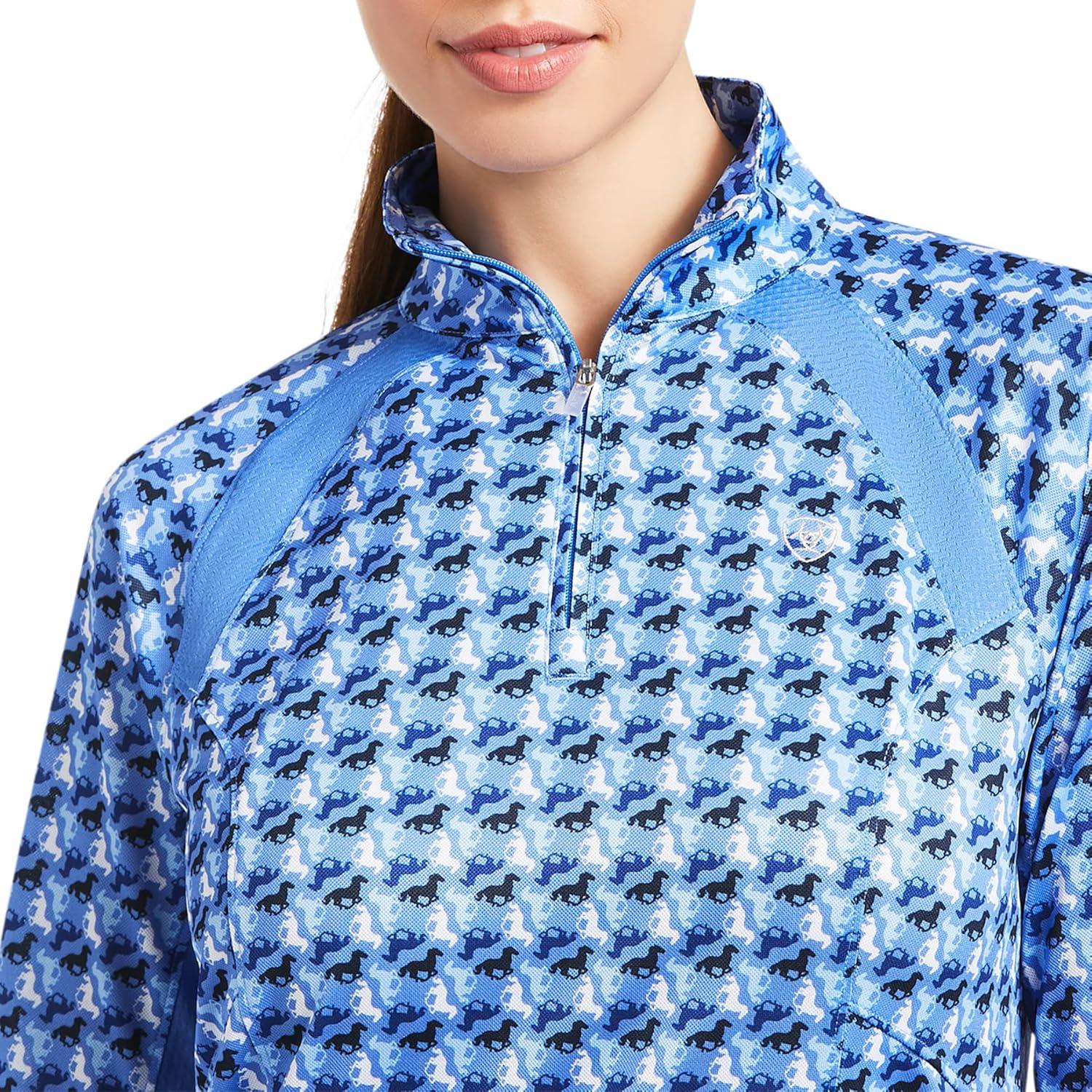 Ariat Women’s Sunstopper 3.0 1/4 Zip Baselayer, North Atlantic Dot, X-Small(Blue)
