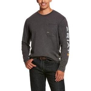 ARIAT Mens Rebar Workman Logo Long Sleeve Crew(Charcoal_heather)