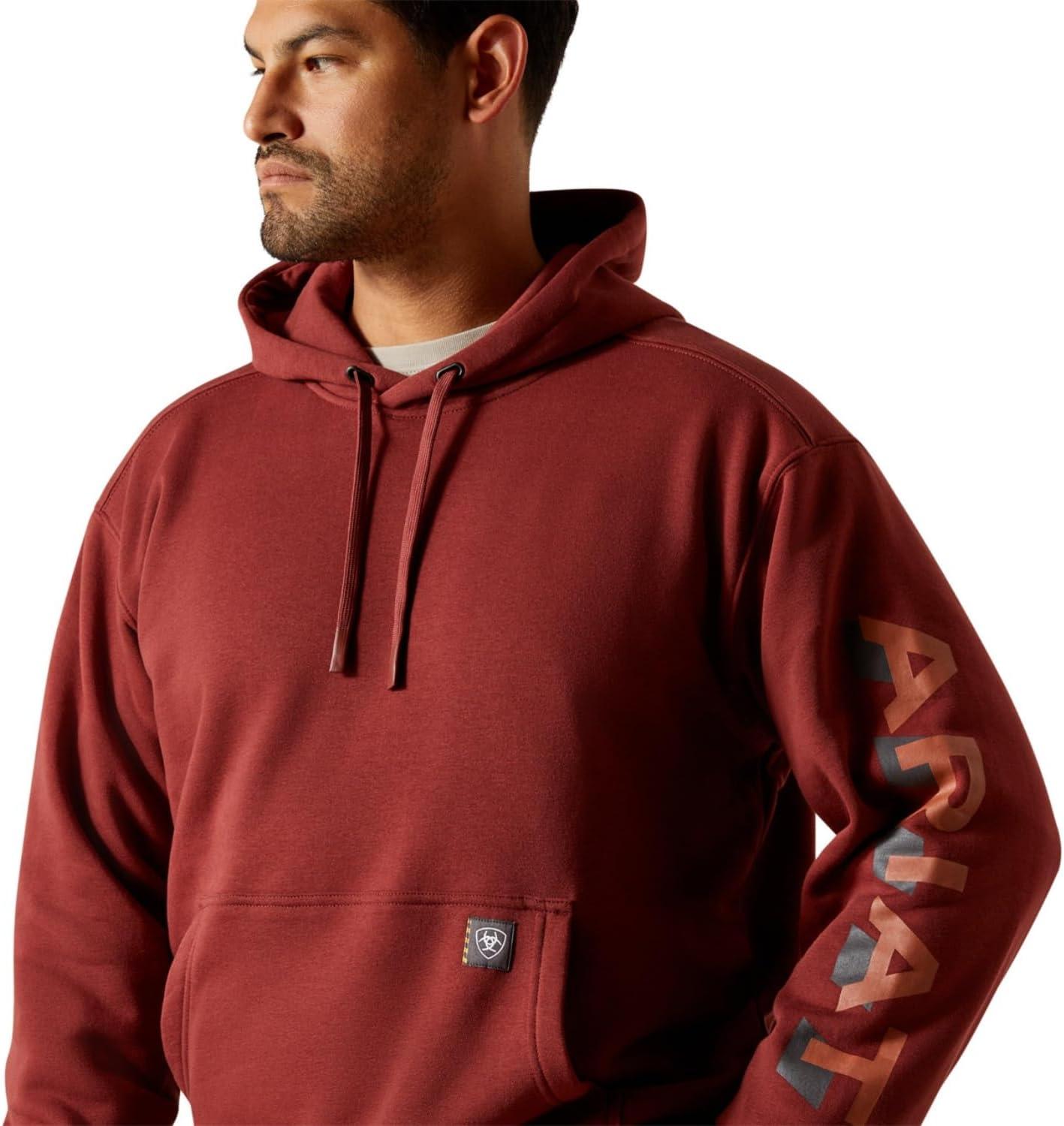 Ariat Men’s Big and Tall REBAR Logo Hoodie(Malbec)