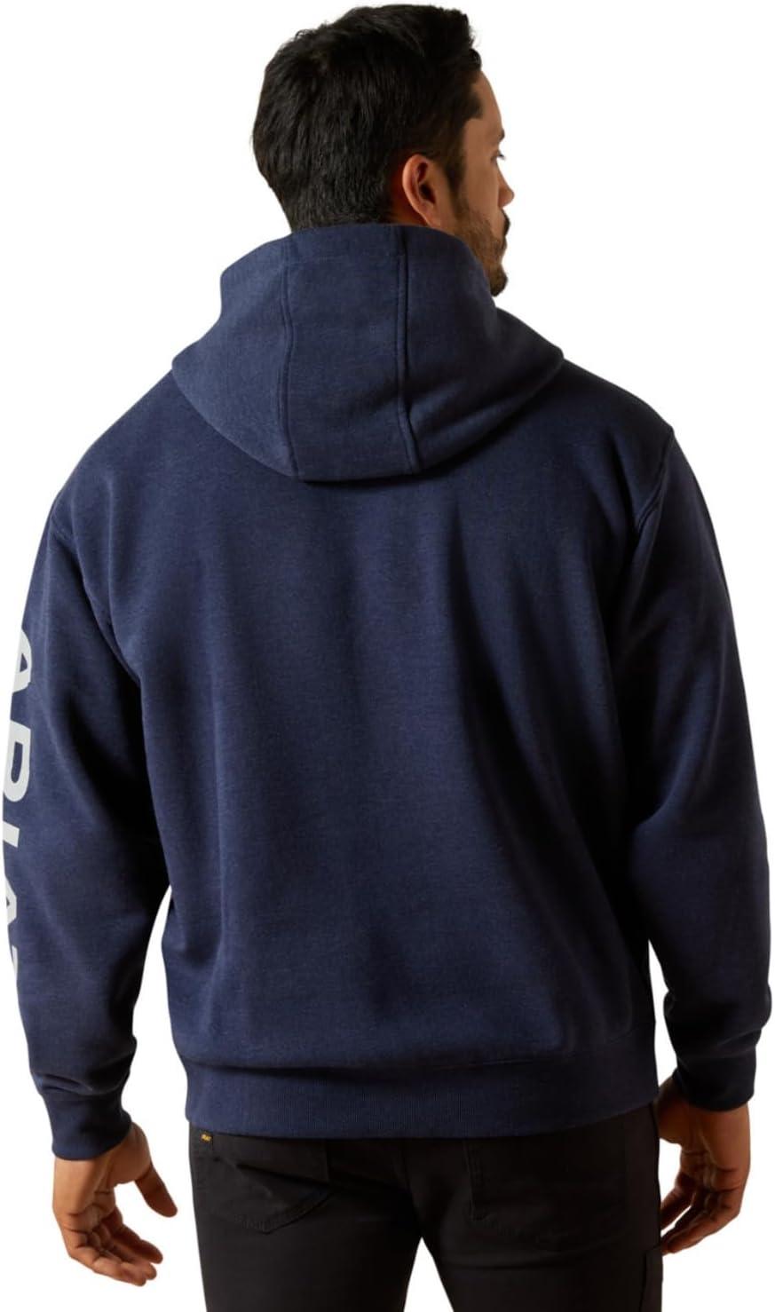 ARIAT mens Rebar Lightweight Logo Hoodie(Navy Heather/Alloy)