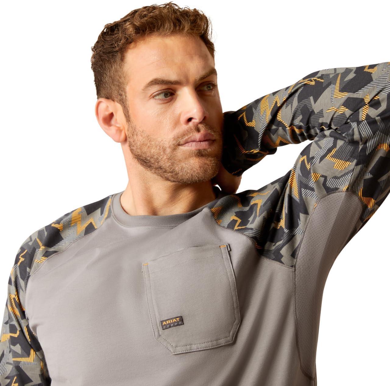 ARIAT Mens Rebar Workman Logo Long Sleeve Crew(Charcoal Grey Camo)