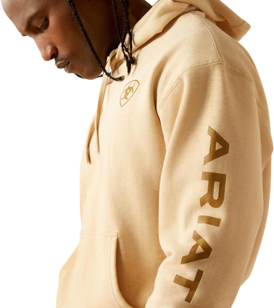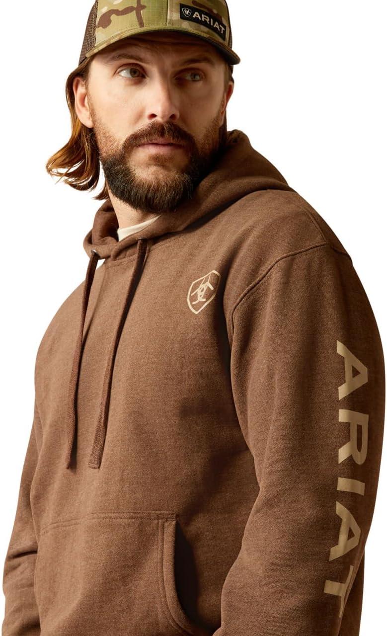 ARIAT mens Logo Hoodie(Chestnut Heather/Tan)